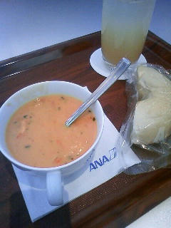 今日は麺はパスして、スープとベーグルにしました。ビジネスのご飯もたのしみなので、これで我慢我慢!
